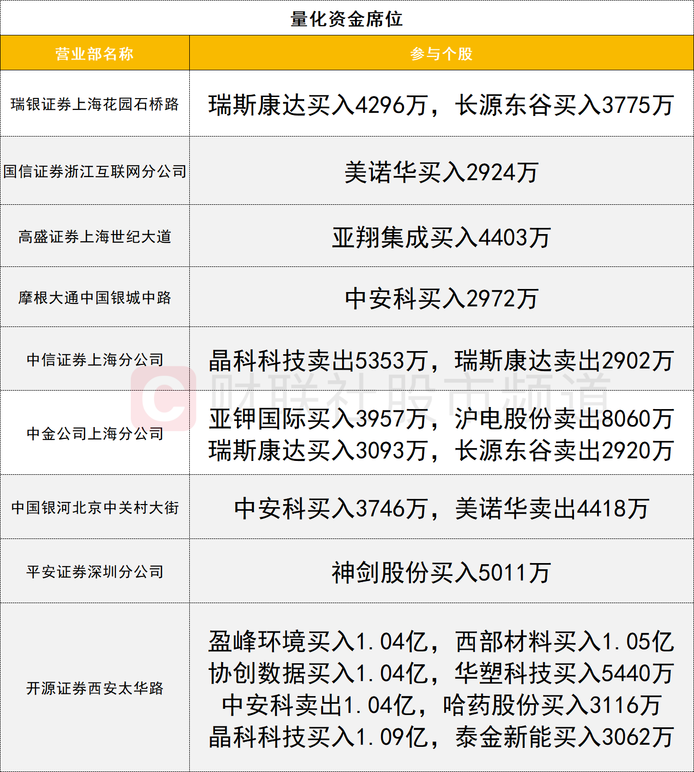 一线游资活跃度较高,沪电股份今日涨停创历史新高,获一家一线游资(国泰海通证券武汉紫阳东路)买入1.96亿,同时深股通买入2.02亿。游资扎堆盈峰环境,获两家游资(国泰海通证券武汉紫阳东路、国泰海通上海海阳西路)合计买入3.2亿,同时一家游资(国泰海通成都北一环路)卖出1.53亿。