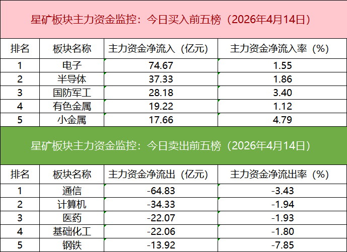 从主力板块资金监控数据来看,电子板块主力资金净流入居首。