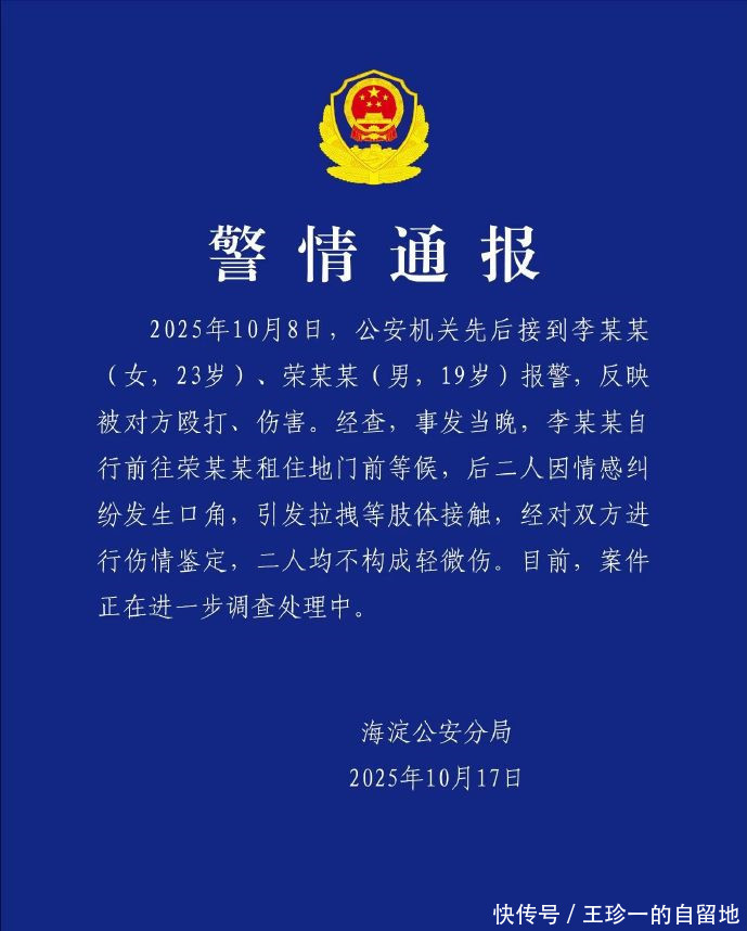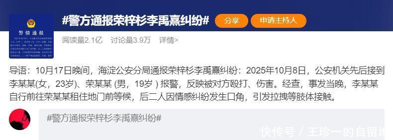 不过,10月17日,网友们没有等来荣梓杉的回应,却等来了警方的通报。